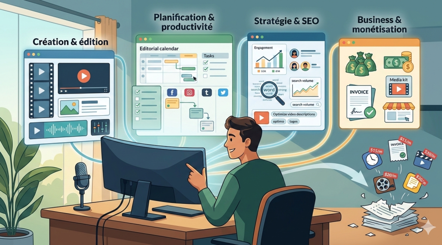 Être créateur, c’est aussi gérer : idées, tournages, publication, relances, collabs… Les requêtes clés :